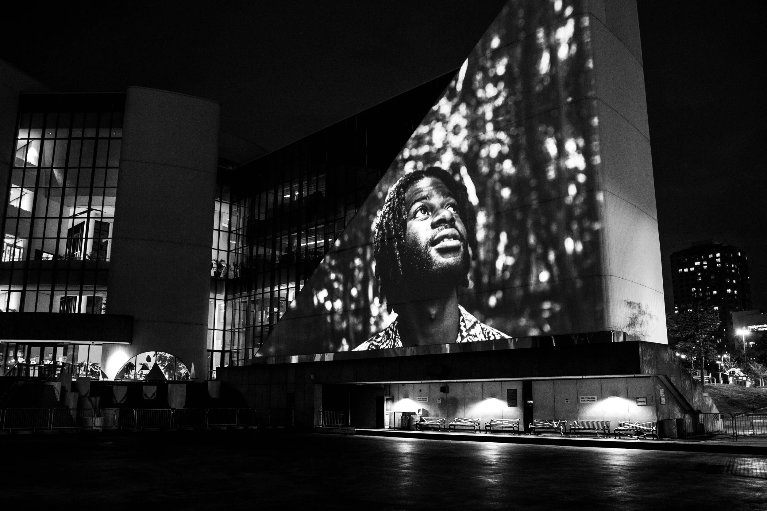 Projection mapping installation taking over the front of the Scarborough Civic Centre building, created to engage the public as part of the City of Toronto’s Big Art TO festival & Toronto’s Year of Public Art 2021-2022